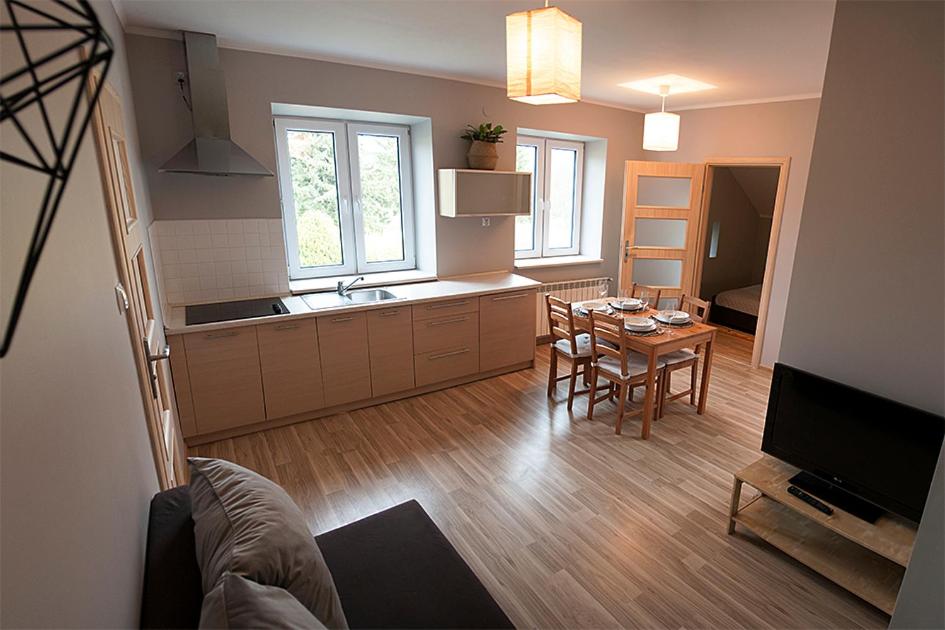 Pokój Dwuosobowy z widokiem na ogród. The spacious double room provides a tea and coffee maker, a seating area, as well as a private bathroom featuring a shower and a hairdryer. In the kitchen, guests will find a stovetop, a refrigerator and kitchenware. The double room offers a flat-screen TV, a dining area, a wardrobe, a sofa as well as garden views. The unit offers 1 bed. Pokój Dwuosobowy - 0 osobowy. Powierzchnia pokoju ok.: 30 mkw.