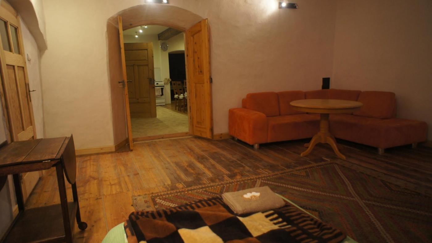 Apartament (6–10 osób dorosłych). A spacious apartment featuring a kitchen with a fridge and shared bathroom facilities There are also comfortable sofas. Apartament - 14 osobowy. Powierzchnia pokoju ok.: 100 mkw.