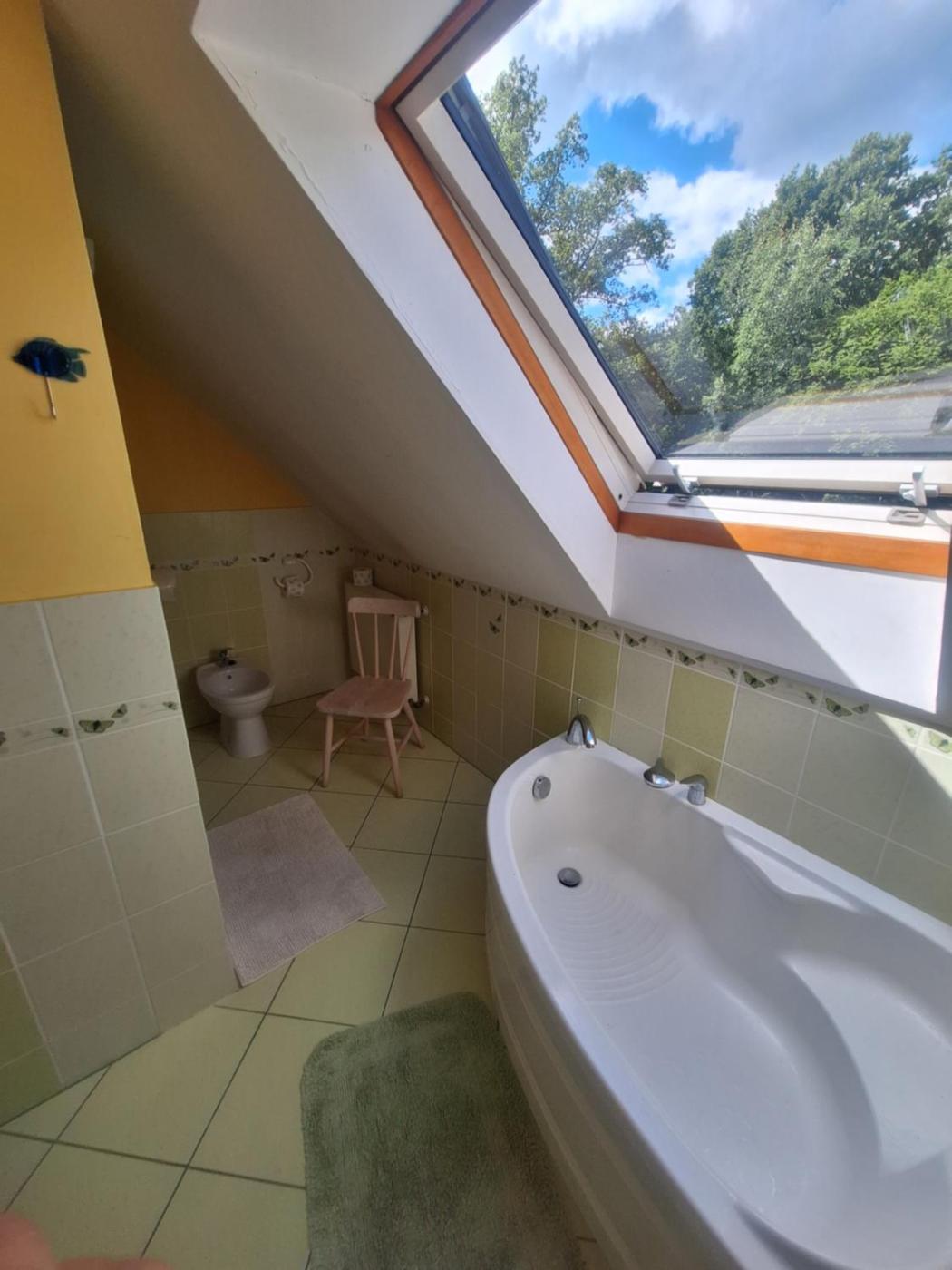 Pokój trzyosobowy z balkonem. Guests will find a refrigerator, kitchenware and a microwave in the kitchenette. The triple room also provides guests with a barbecue. The triple room provides a tea and coffee maker, a dining area, a terrace with garden views as well as a private bathroom featuring a bath. The unit offers 3 beds. Pokój Trzyosobowy - 3 osobowy. Powierzchnia pokoju ok.: 16 mkw.
