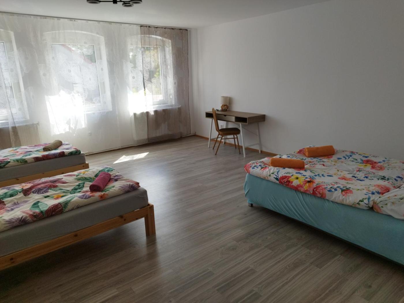 Pokój Czteroosobowy ze wspólną łazienką. The quadruple room includes a private bathroom, well-fitted with a bath, a shower, a hairdryer and slippers. The fully equipped kitchen features a refrigerator, kitchenware, a microwave and a tea and coffee maker. The quadruple room provides a dining area, a wardrobe, as well as a patio and an outdoor dining area. The unit offers 4 beds. Pokój Czteroosobowy - 4 osobowy. Powierzchnia pokoju ok.: 30 mkw. ;