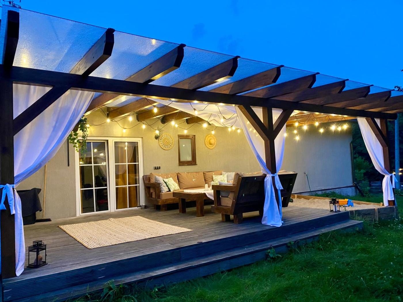 Apartament z 2 sypialniami. The sauna is a top feature of this apartment. Boasting a private entrance, this spacious apartment also comes with 1 living room, 2 separate bedrooms and 1 bathroom with a walk-in shower. Guests will find a stovetop, a refrigerator, a dishwasher and kitchenware in the well-fitted kitchen. The apartment also includes a barbecue. Featuring a terrace with garden views, this apartment also features a washing machine and a flat-screen TV with streaming services. The unit has 4 beds. Apartament - 6 osobowy. Powierzchnia pokoju ok.: 90 mkw. ;