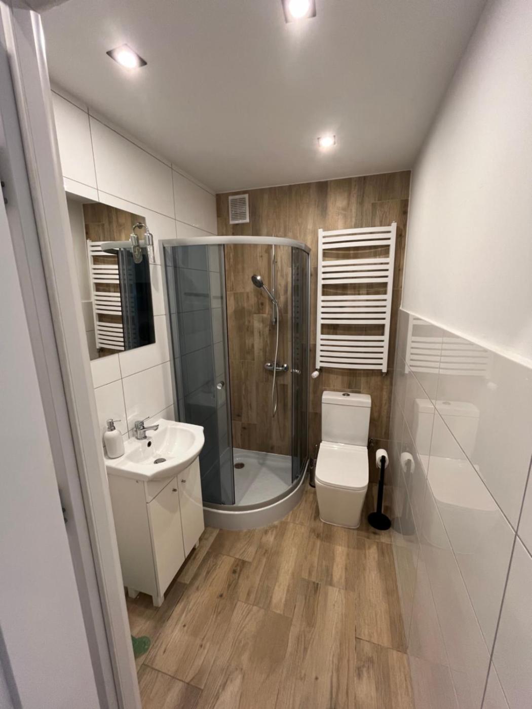 Pokój Trzyosobowy z prywatną łazienką. The triple room features a washing machine, a wardrobe, a terrace with garden views as well as a private bathroom boasting a shower. The unit has 2 beds. Pokój Trzyosobowy - 3 osobowy. Powierzchnia pokoju ok.: 19 mkw. ;